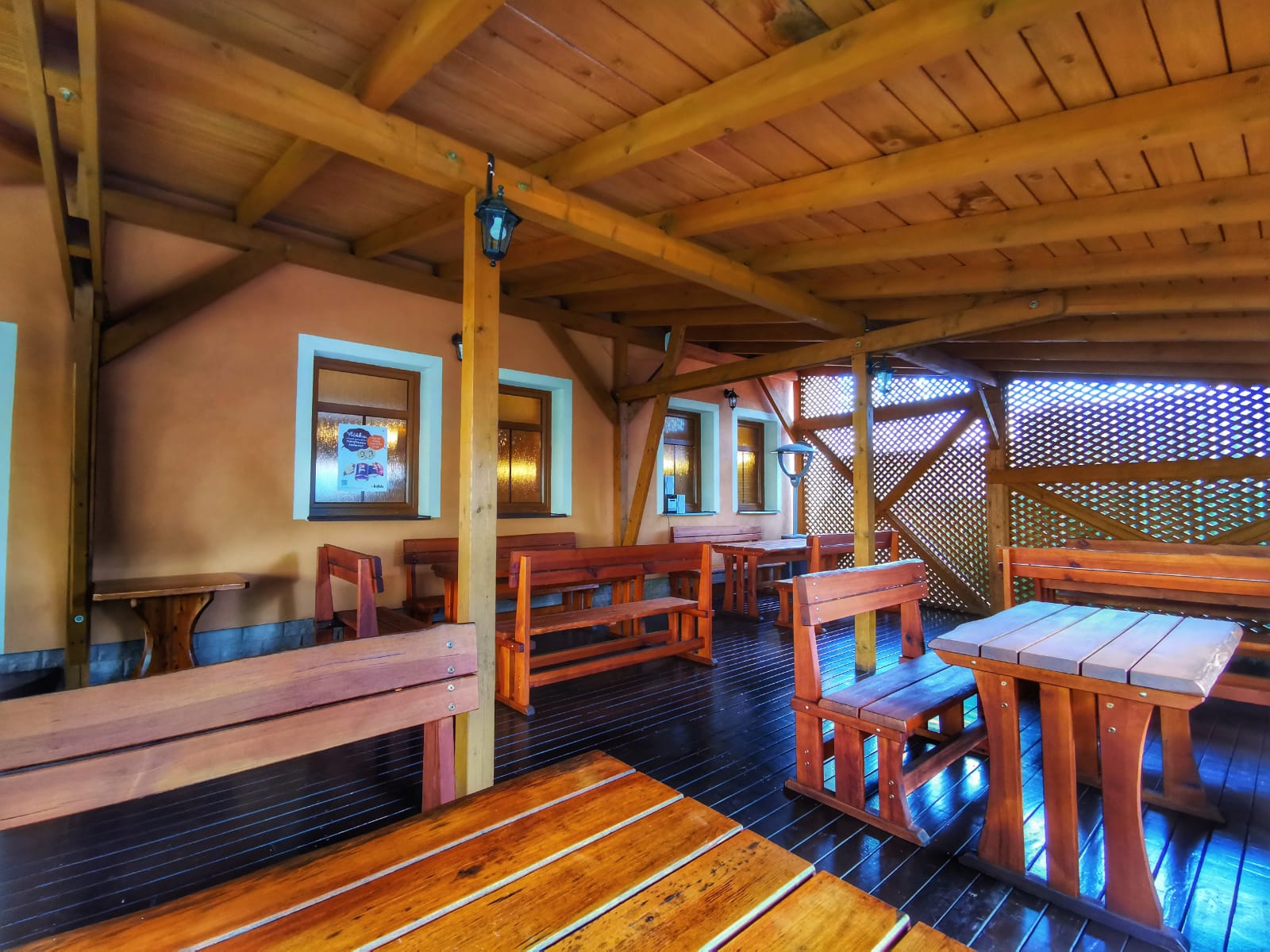 krytou letní terasu s dětským hřištěm